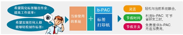 b-PAC是支持通过用户编写的程序直接控制P-touch来打印标签的组件。只需编写支持使用系统的简单程序,就能够在当前系统中添加标签打印功能。