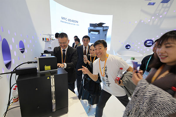 作为艺术传播机构艺高高(artgogo)的首席艺术官(CAO),曹启泰先生在进博会的第二天也来到了Brother展台。看他在展馆里玩的这么开心,兄弟就放心啦!