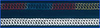 双针三线饰缝。常用于 T 恤衫及针织衫上的卷边及装饰性效果的针迹。