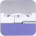 当在筒状等不易移动的布料上进行贴布绣时侧向进给非常有用。缝制直线针迹和曲折缝针迹时左右两侧均可进行侧向进给。