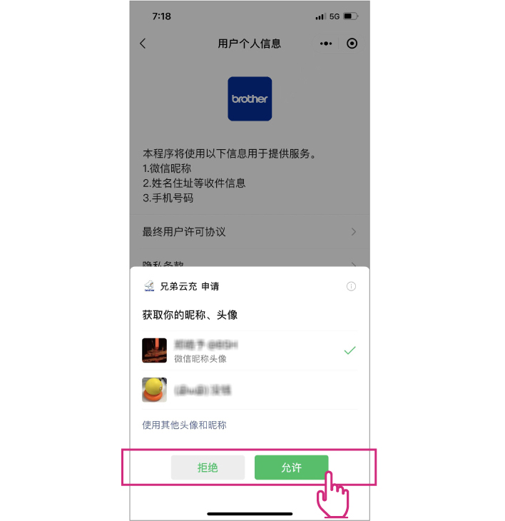 小程序提示授权后,点击“允许”即可获取已绑定打印机