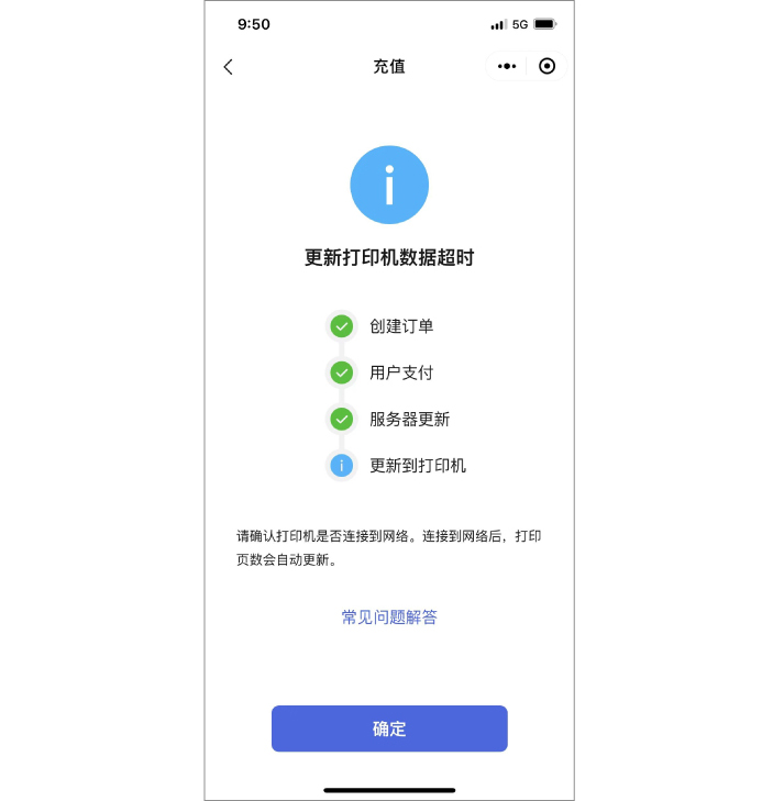 充值过程中需要确保打印机与云充小程序可以正常接入同一局域网内。