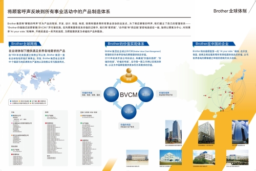 为了响应“顾客的呼声”建立了Brother价值链式经营管理简称BVCM。将需求链、合作链、供应链紧密联系在一起,在向顾客提供优良服务与产品的过程中时刻秉承“At your side.”精神。